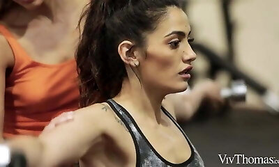 Girl-on-girl threesome in the gym with Cherry Kiss and Romy Indy