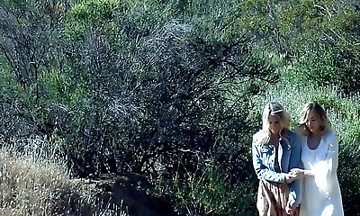 Two naughty honeys at night by the bonfire feeling horny