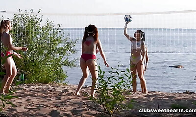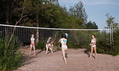 Beach volleyball gets the blonde lesbians tired but once they get back home they get engaged with themselves