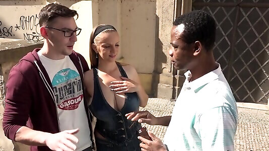 pasión por la moda con un gerente de pelo claro con tetas grandes
