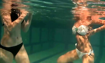 ninfas chisporroteantes irina y anna nadan desnudas en la piscina