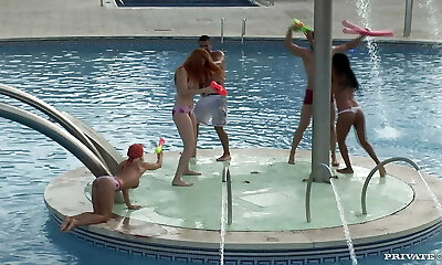 amigos haciendo twerking en la piscina y luego se comen los coños de los demás