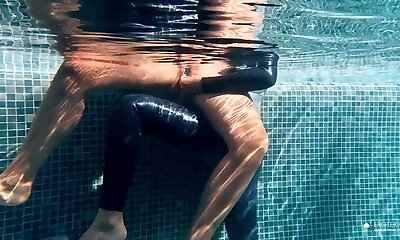 Latex Girls Play in Swimming Pool