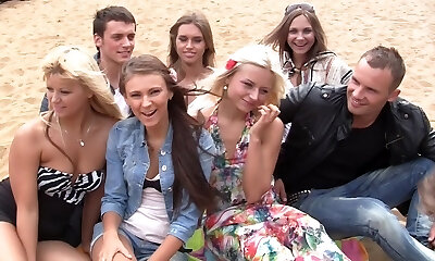 Autumn & Grace & Bianca & Olie & Savannah in outdoor orgy movie with hot student chicks